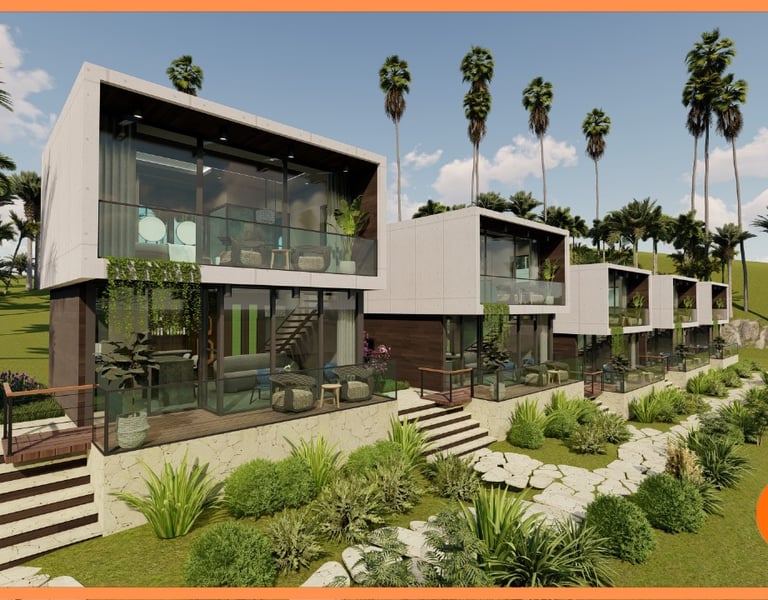 Eco-friendly villa project ideal for investors with short-term ecotourism projects, surrounded by nature, mountains, rivers, or beaches.